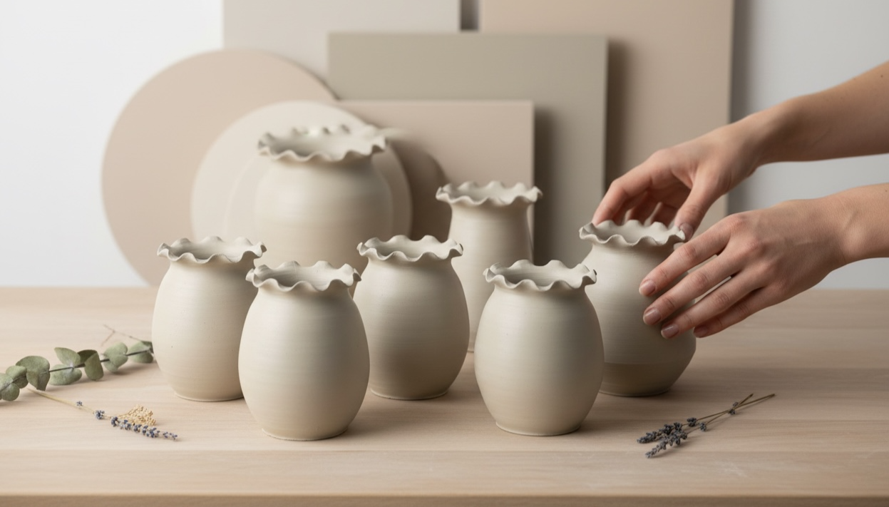 Handmade bud vase with a ruffled rim