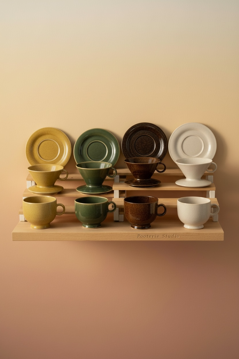 Making matcha before work became a small sanctuary, a practice that called for presence and intention. She didn’t love using two dishes on busy mornings though, so she designed a mug that could hold both the whisking and the sipping in one place. On some days, coffee felt like the right path; its slow, rhythmic drip offering a different kind of grounding. That inspired a simple, sculptural dripper that rests neatly on top of the mug. The saucer brings everything together as a lid, a resting place, or a small plate for whatever the day calls for.